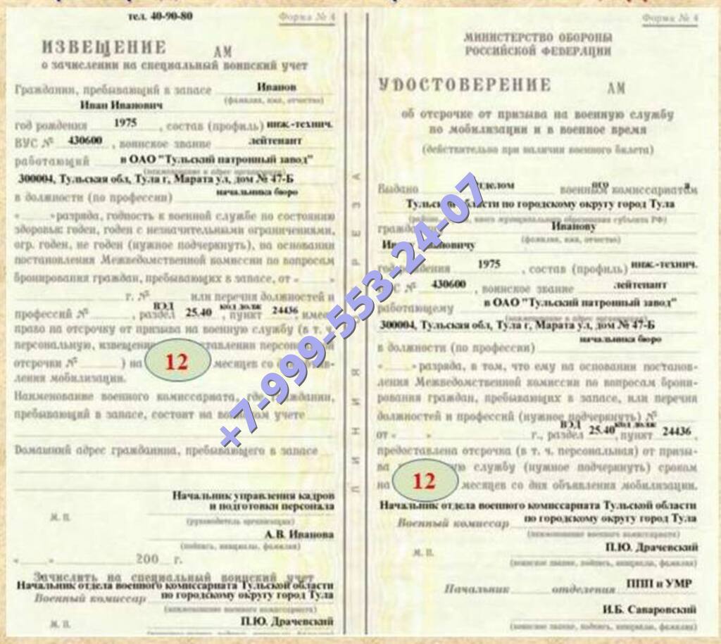 Наша компания предлагает купить в Буденновске удостоверение об отсрочке на военную службу на максимально выгодных условиях для клиента. Документы легальные, использованы бланки государственного образца.